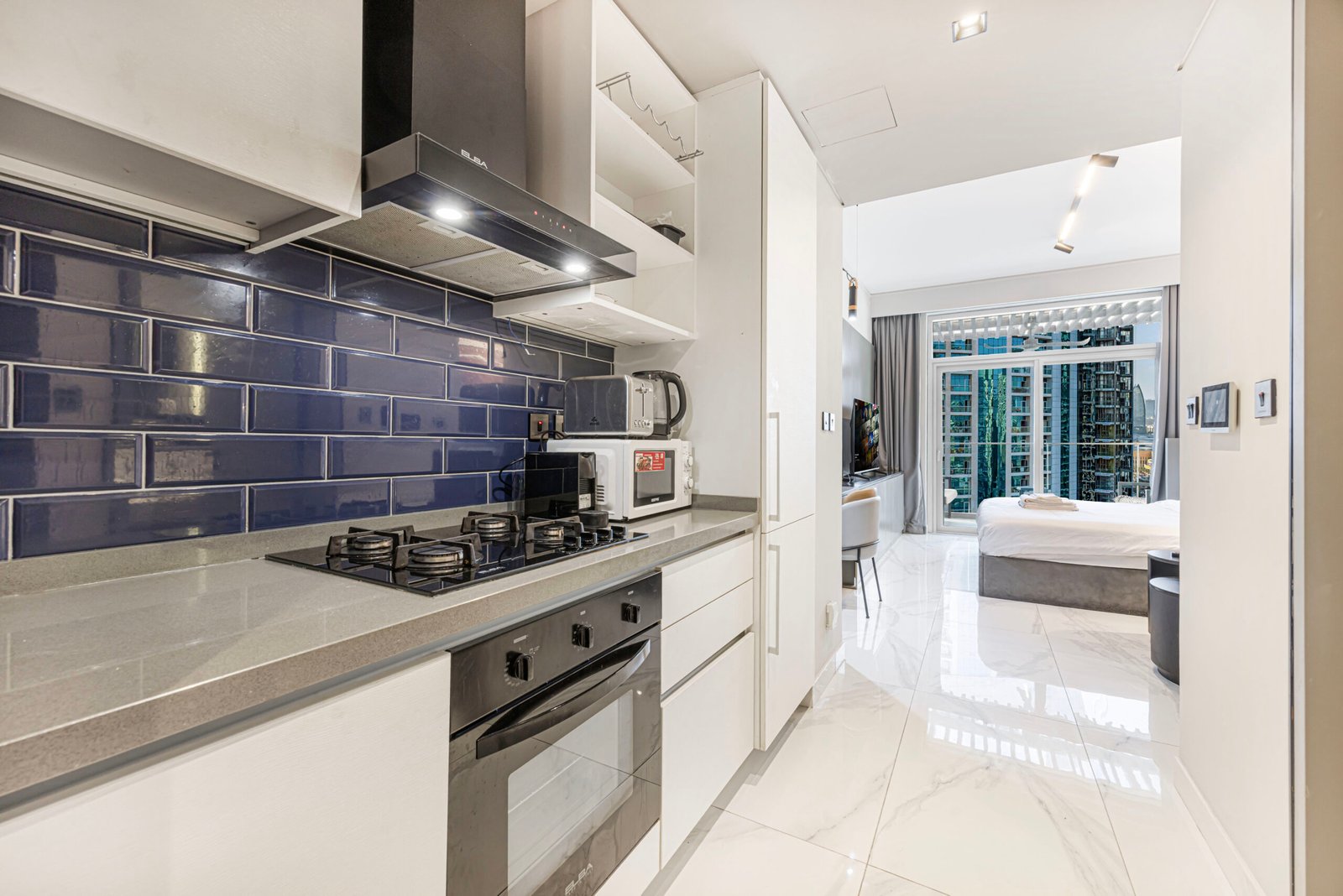 - Open-plan studio layout maximizing space and functionality